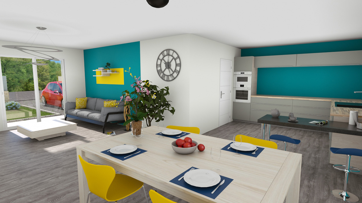 Sur ce terrain, nous vous proposons la construction de cette belle maison de plain-pied, avec garage accolé.