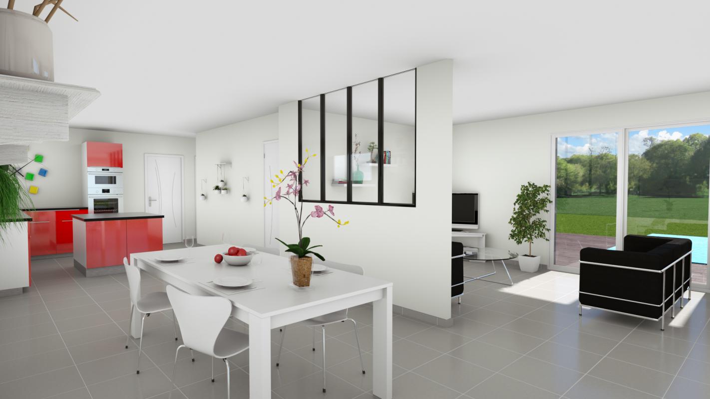 Cette maison de plain-pied a été conçue pour vous offrir de beaux espaces de vie lumineux et fonctionnels. Son plan intérieur favorise un agencement en deux espaces distincts avec la partie jour d'un côté et l'espace nuit de trois chambres de l'autre.