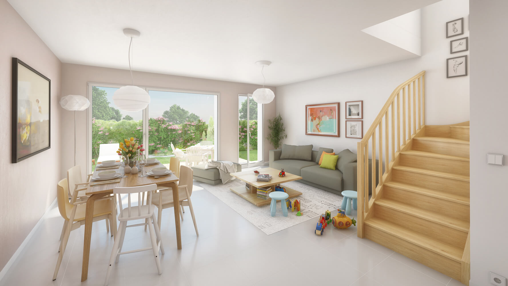 Vous apprécierez la superficie et la luminosité de votre salon/séjour/cuisine. Pour votre confort, le cellier attenant à la cuisine offre un accès direct au garage.