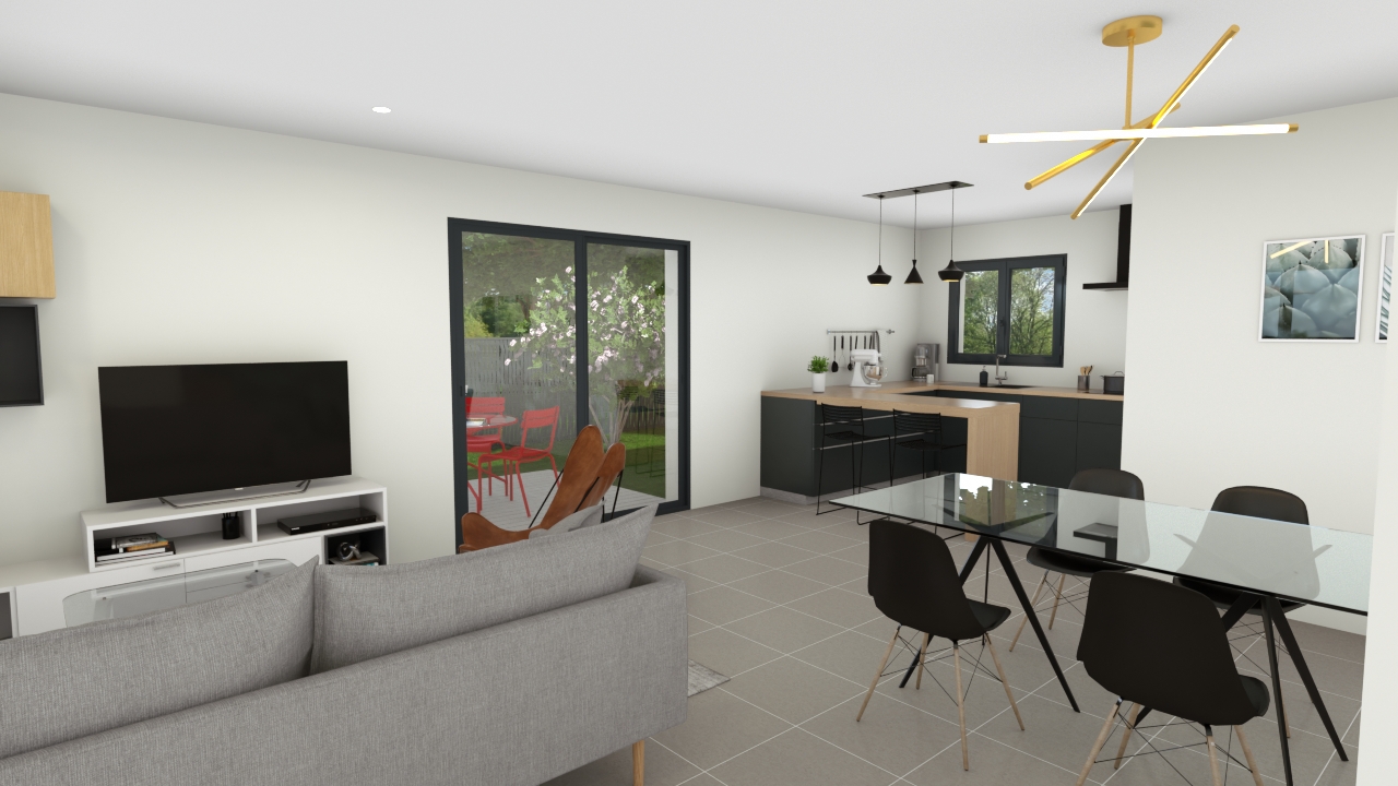 Fonctionnelle, cette maison traditionnelle dispose d'une belle pièce de vie à triple orientation, avec une grande baie vitrée pour un maximum de lumière.