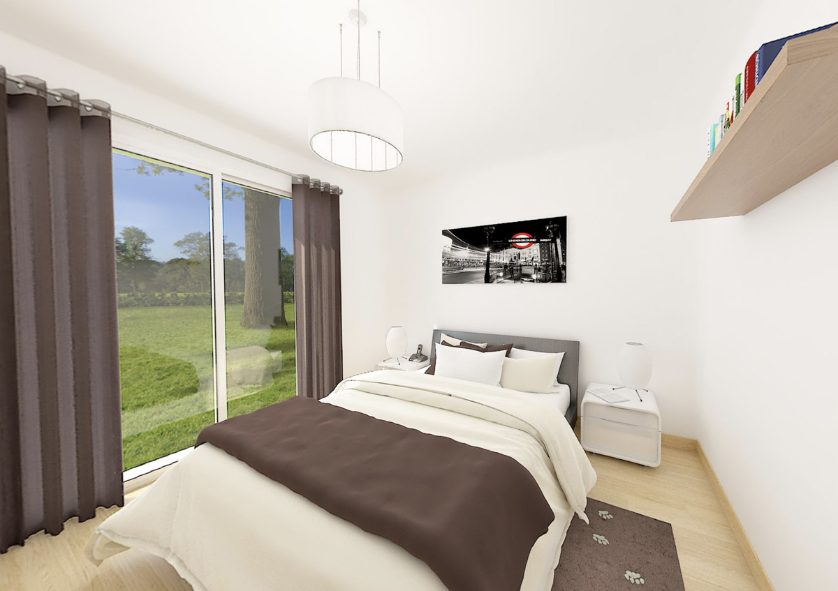 Optimisation des volumes et fonctionnalité sont réunies dans ce modèle de maison avec garage intégré !