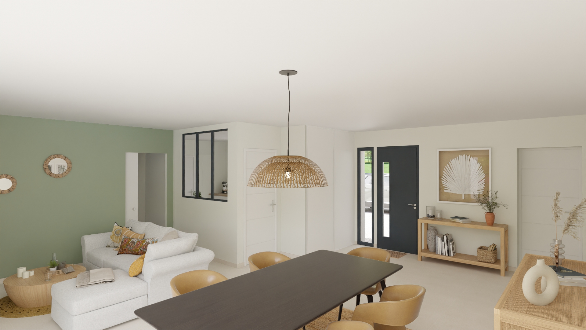 Fonctionnelle, cette maison traditionnelle dispose d'une belle pièce de vie à triple orientation, avec une grande baie vitrée pour un maximum de lumière.