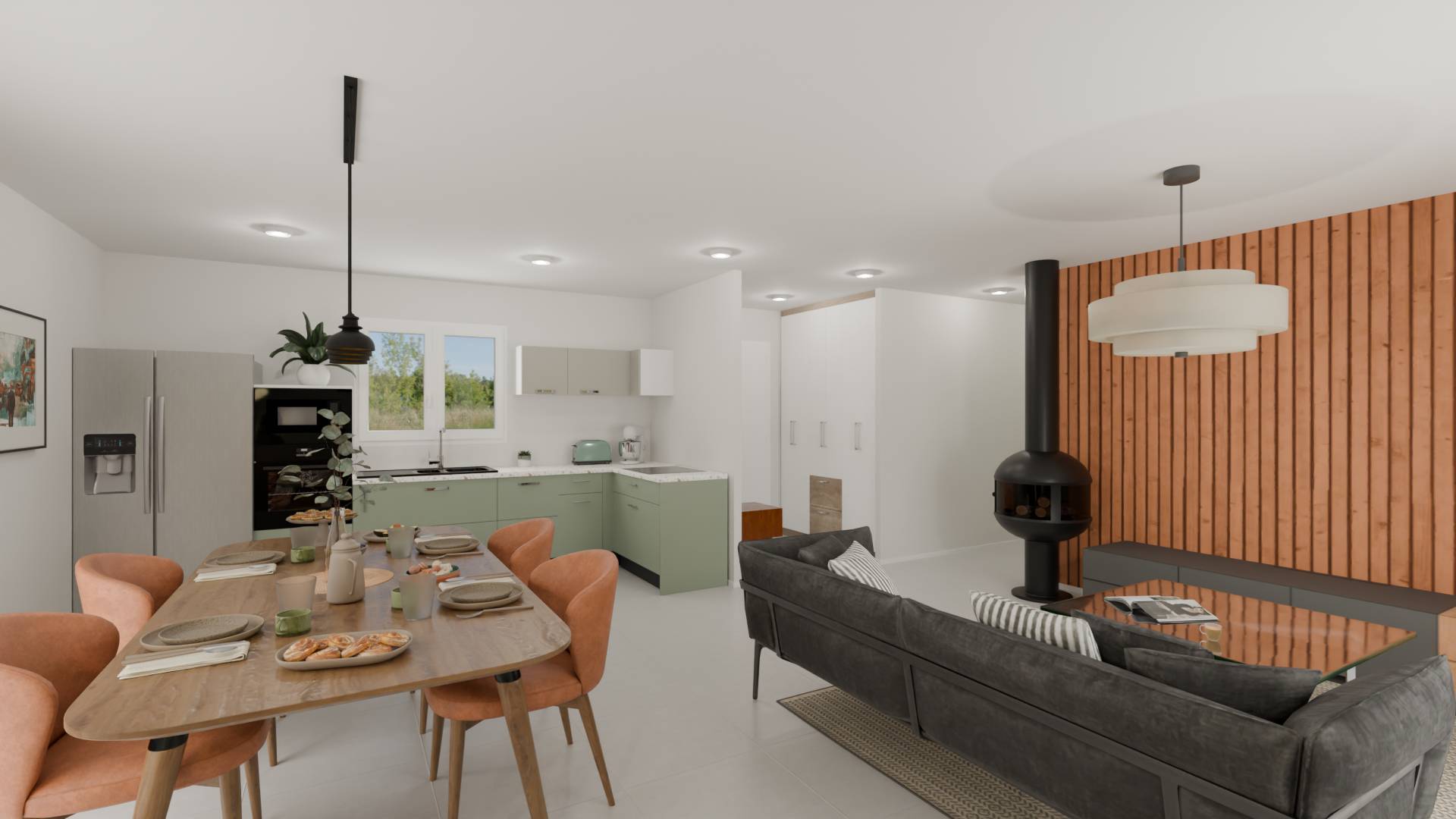 Espace de vie lumineux : Un vaste séjour traversant avec cuisine ouverte, idéal pour vos moments en famille, donnant directement sur le jardin.