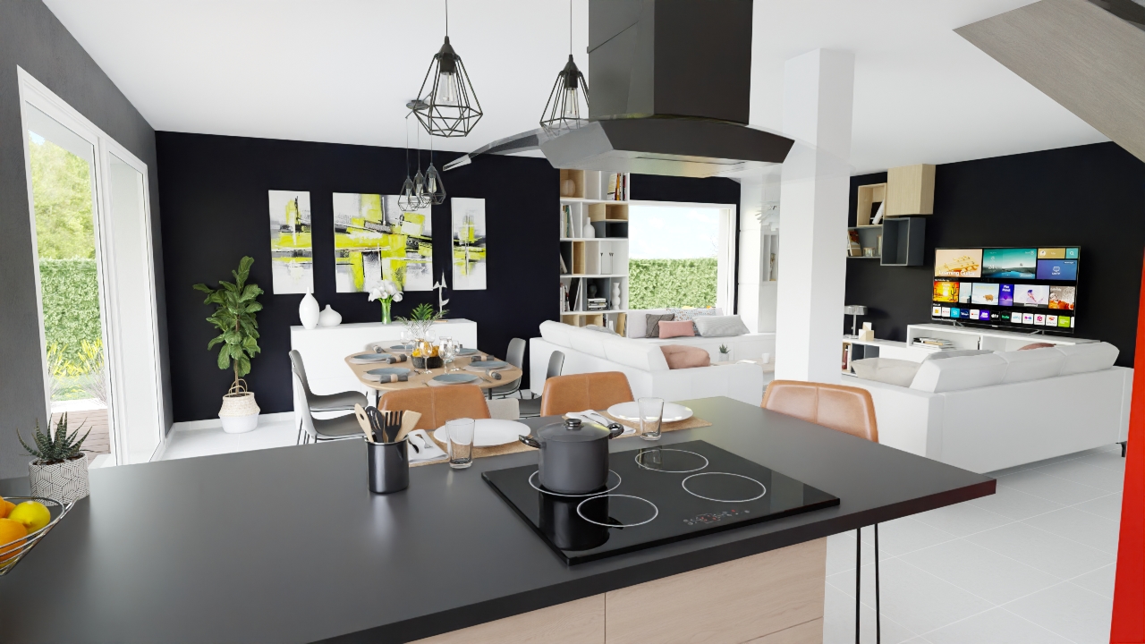 Votre future maison neuve s'ouvre sur un grand volume de vie lumineux, à triple orientation. Trois belles chambres et une salle de bain avec WC séparé occupent la partie nuit, située en retrait de la pièce principale.