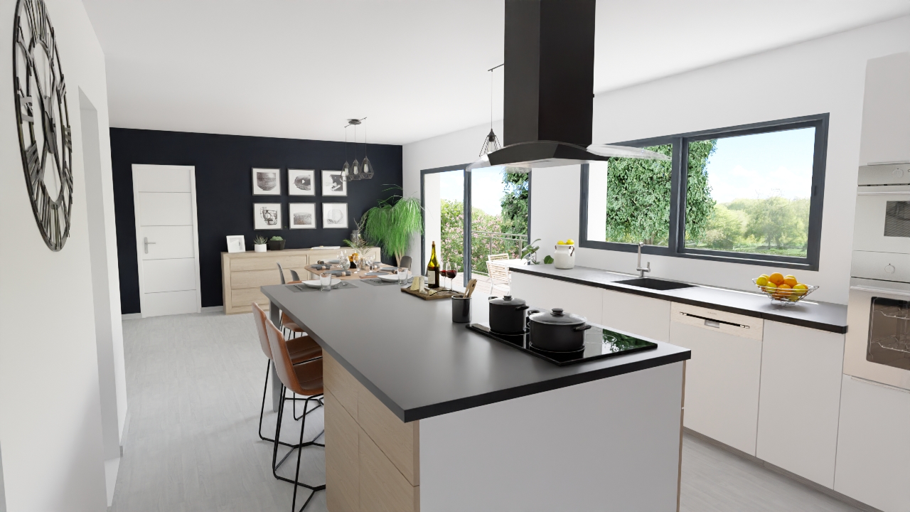 Ce modèle moderne et fonctionnel vous offre tout le confort d'une habitation avec deux espaces de vie bien distincts : une partie jour conviviale et chaleureuse, et une partie nuit composée de 4 chambres à l'étage.