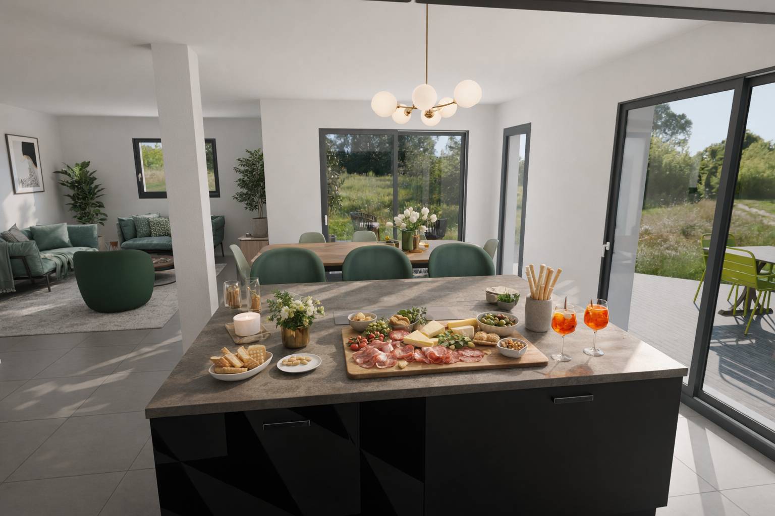 Espace de Vie : Un vaste séjour de plus de 30 m² ouvert sur une cuisine de 11 m², créant un volume de vie lumineux et traversant.
