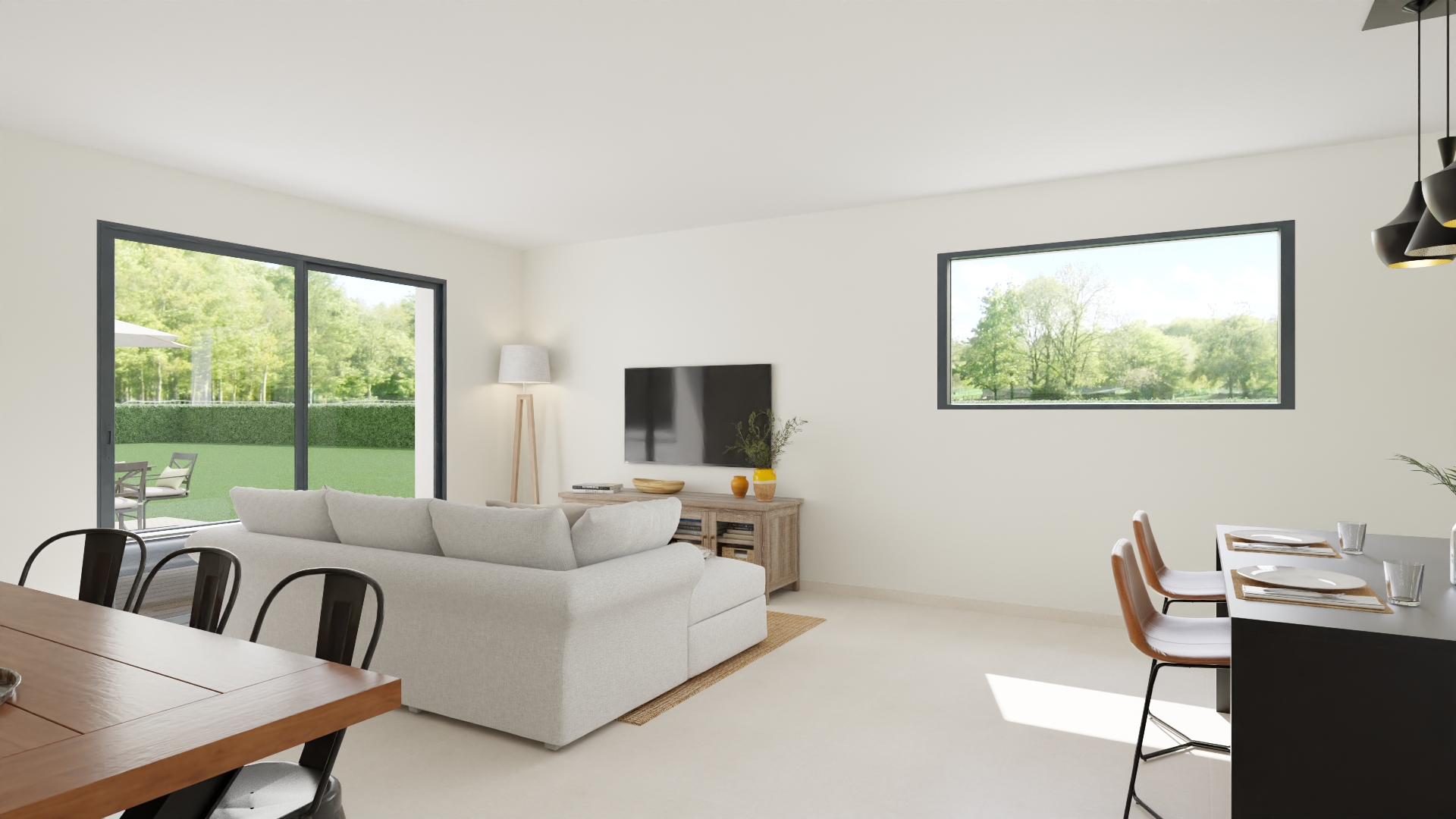 Fonctionnelle, cette maison traditionnelle dispose d'une belle pièce de vie traversante avec une grande baie vitrée pour un maximum de lumière.