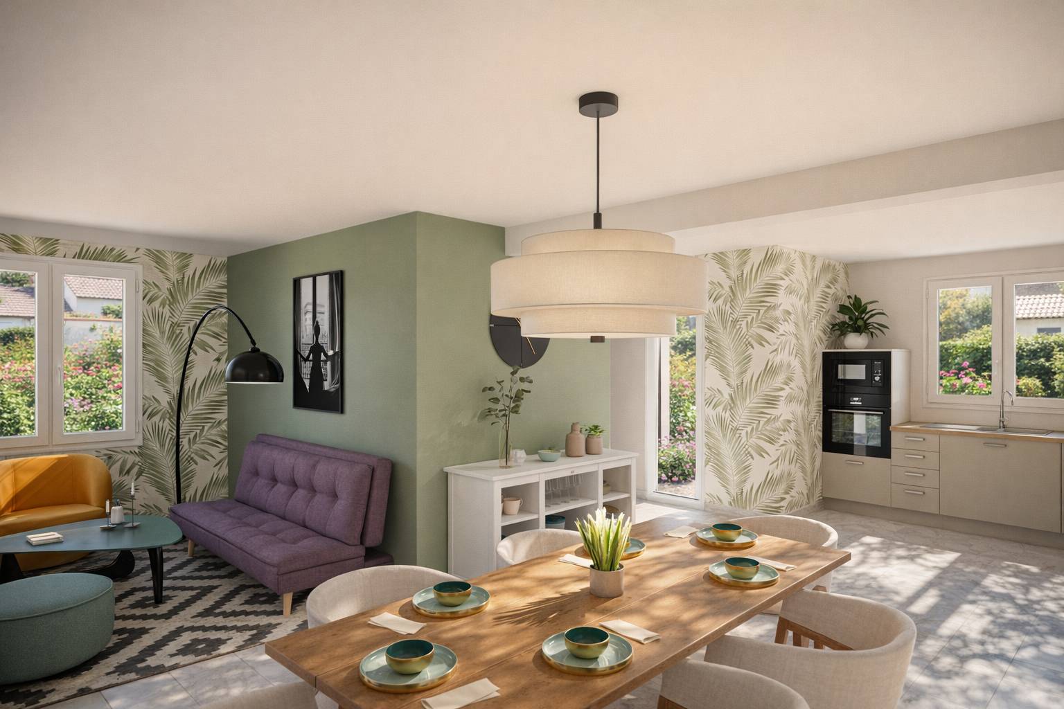 Espace de Vie : Profitez d'un agréable séjour lumineux, ouvert sur la cuisine pour plus de convivialité au quotidien.