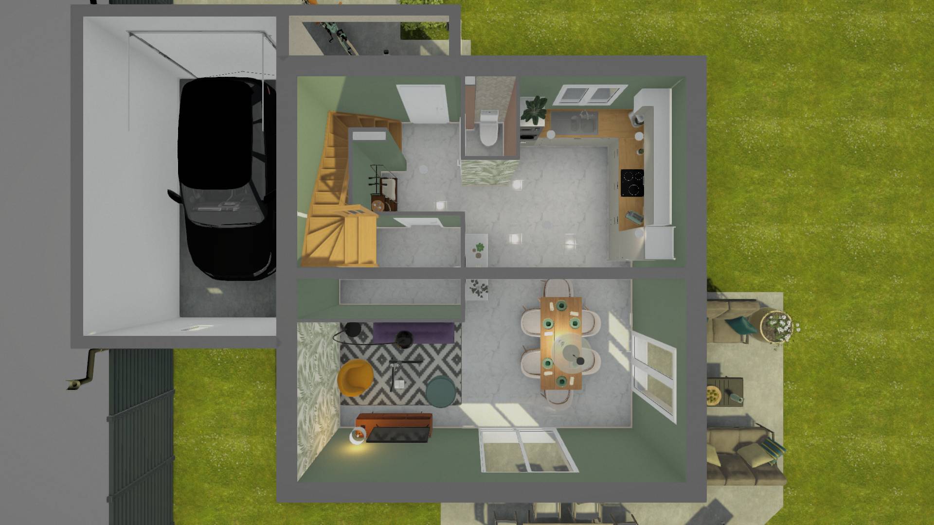 UN REZ-DE-CHAUSSÉE CONVIVIAL Le niveau bas est entièrement consacré à la vie commune :