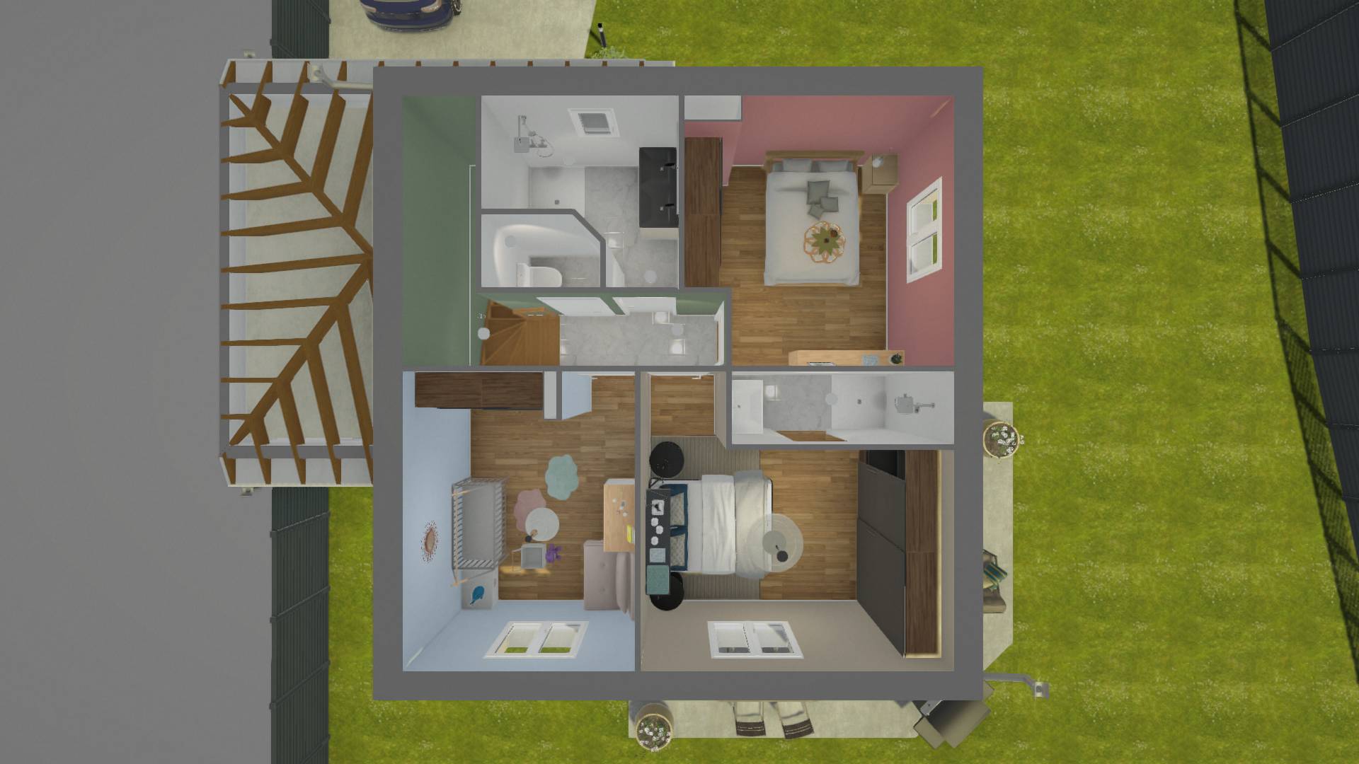 Chambres : Le palier distribue 3 belles chambres (ou 4 selon la version choisie), offrant à chaque membre de la famille son propre espace personnel.